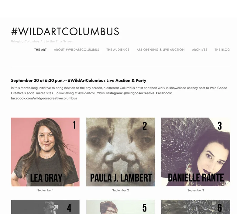 Responsible for initial conception, design, and implementation of a month-long Instagram show that pays Columbus artists to create and raises funds for Wild Goose Creative. This program is on its third iteration, affecting more than 90 artists, and raising more than $12,000 for art in Central Ohio.